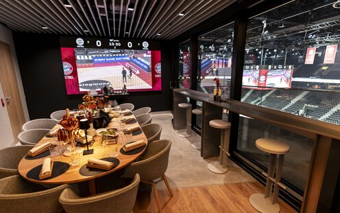 Experience VIP comfort in the VIP-Boxes above the main stand. Enjoy excellent views of the pitch from your centrally located seat. All seats are side-by-side, upholstered, and covered – for a premium matchday experience.